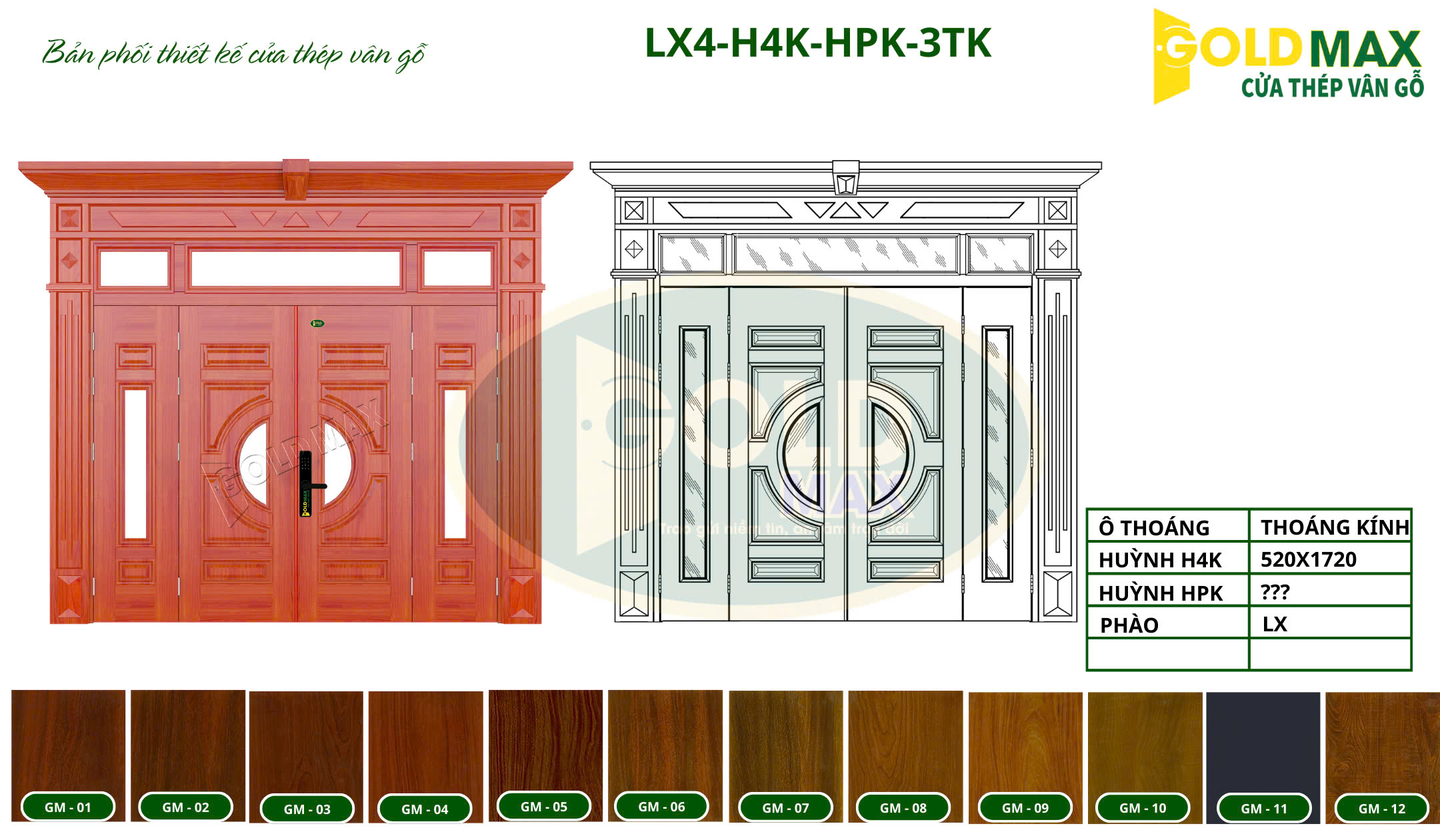 Cửa thép vân gỗ LX4-H4K-HPK-3TK