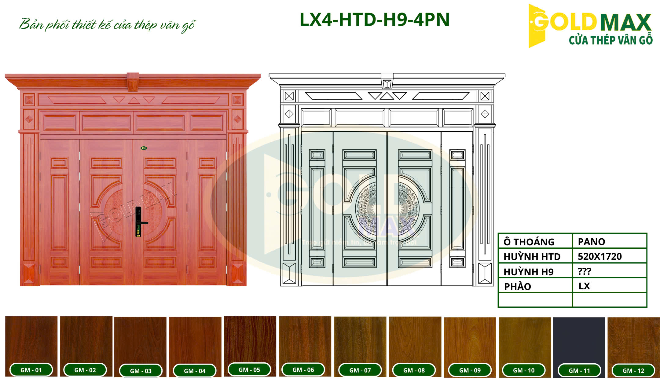 Cửa thép vân gỗ Gold Max 4 cánh có thiết kế đa dạng và linh hoạt, phù hợp cho nhiều không gian từ nhà phố, biệt thự đến văn phòng và khách sạn. Sự kết hợp giữa vẻ đẹp thẩm mỹ và tính năng an toàn, bền bỉ khiến sản phẩm này trở thành lựa chọn lý tưởng cho nhiều loại công trình khác nhau.